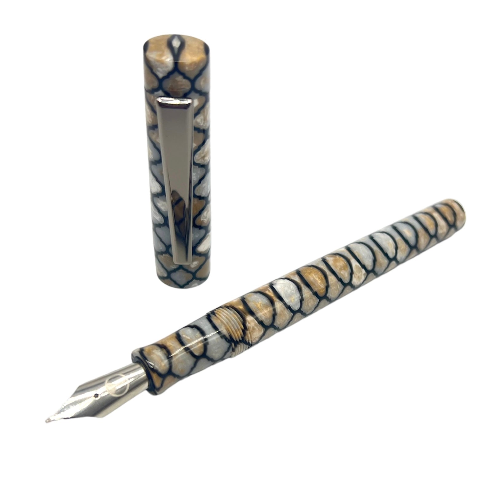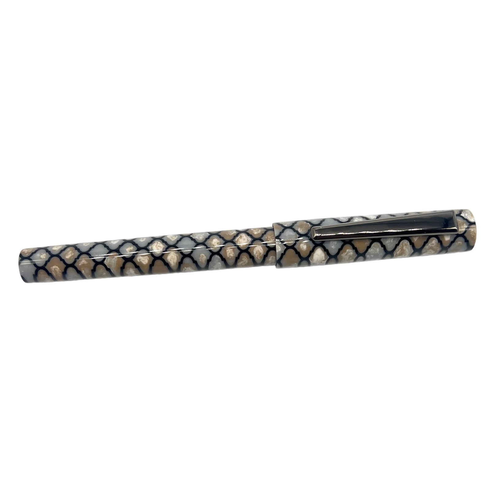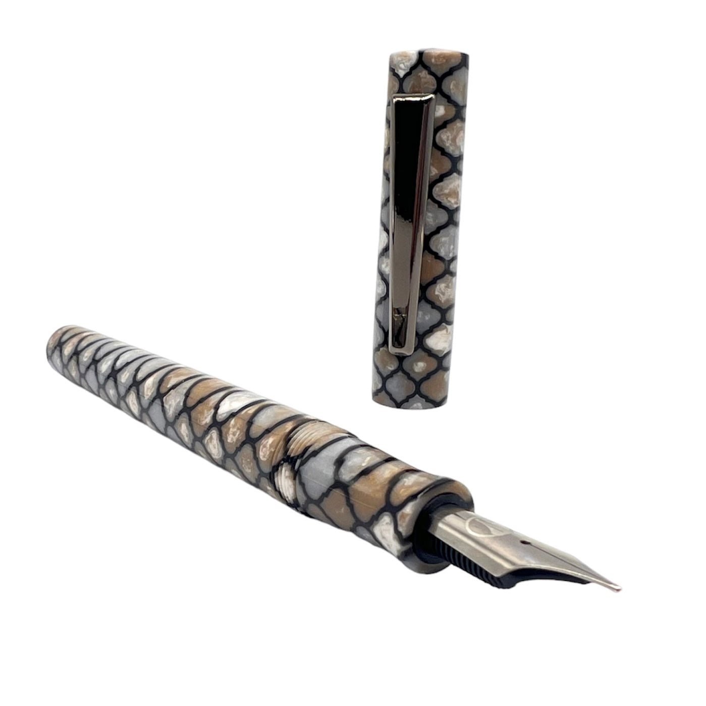 Arabian Palace is a black Moroccan lattice with colors of silver, white and gold poured to create this gorgeous fountain pen.