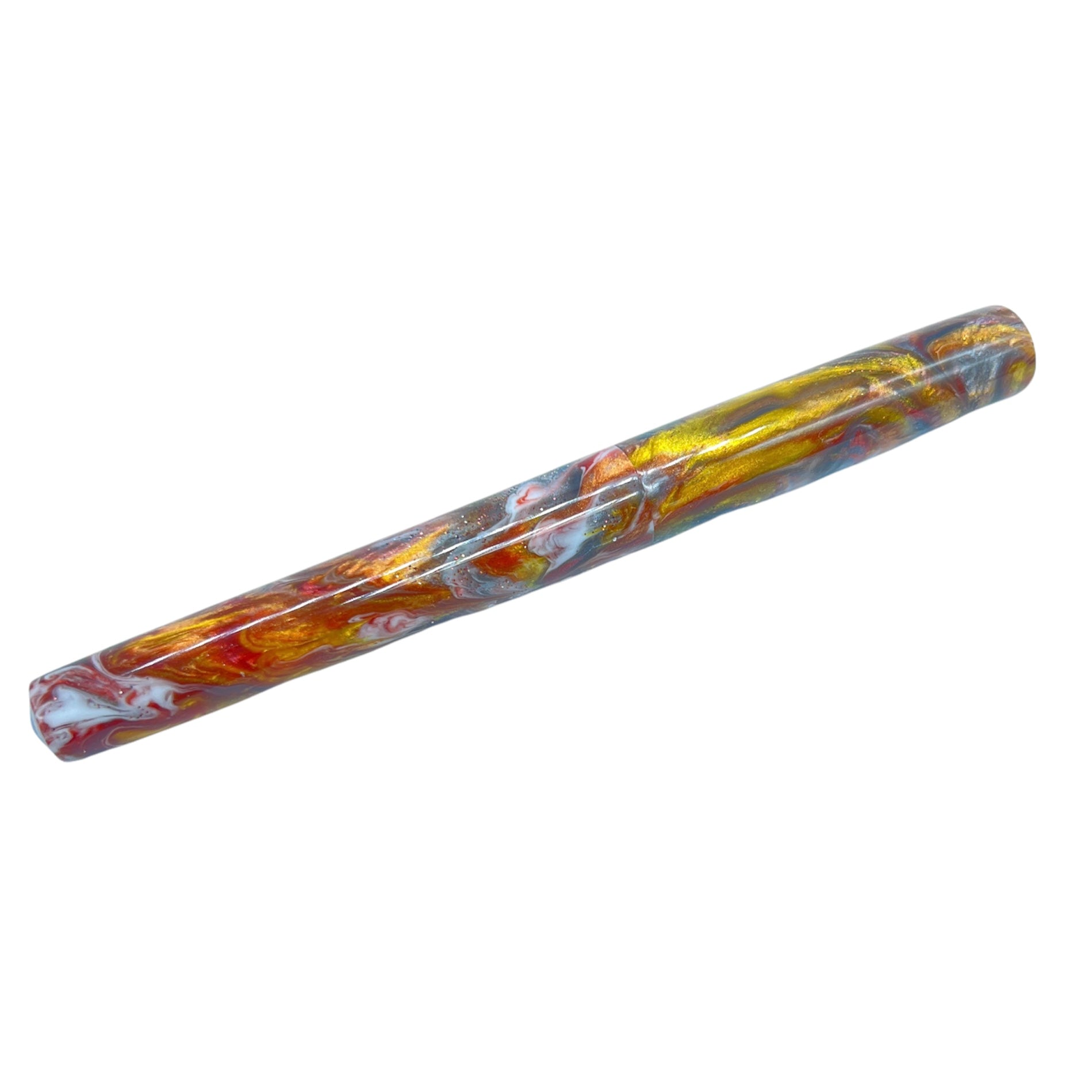 Golden caramel swirls through shimmery reds and sparkling greys in this decadent Caramel Apple blank. Choose your own style, nib and clip options.