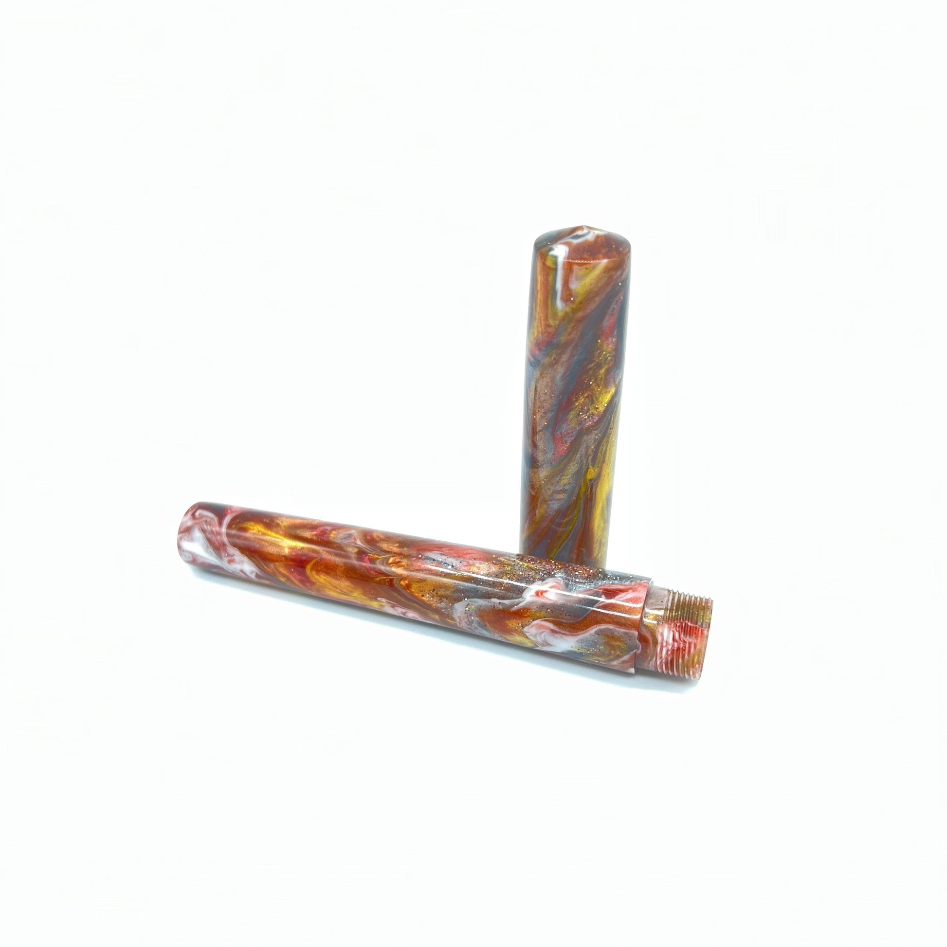 Caramel Apple is a custom-Tailored Pen Company blank. Poured and cured in our own workshop. Each pour has the same colors but each one is unique in swirls and patterns created from the pour process. Please note that the pen pictured will not be the exact one you receive but will be the same colors - swirl patterns vary with each blank.