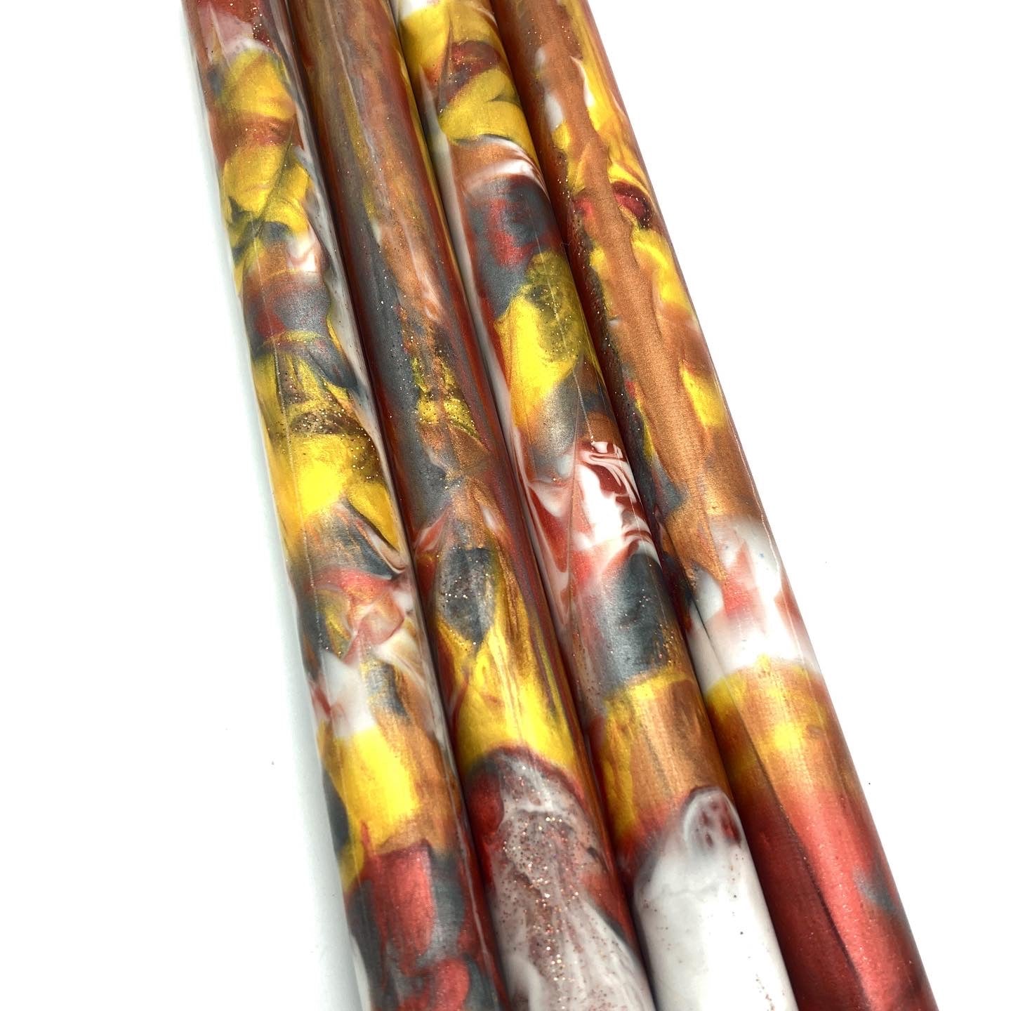 Delicious swirls of red, gold, silver and white in this Caramel Apple blank.