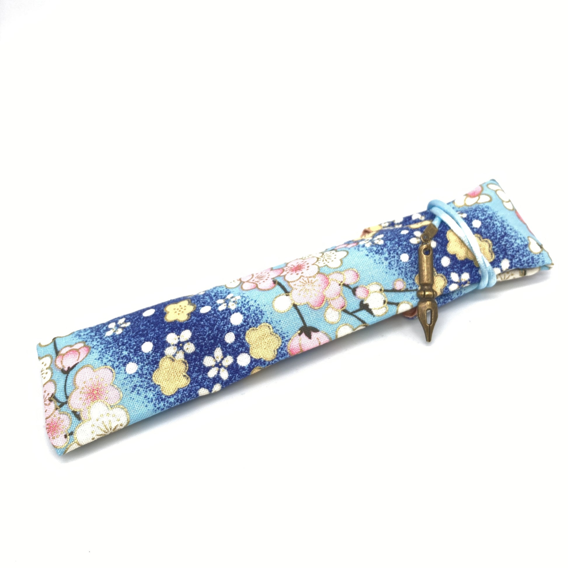 Inspired by the pattern of those beautiful kimono pen sleeve we present Cherry Blossom. Pale pink petals in gold with a blue background. Full of swirls at every turn of the pen. Cherry Blossom Fountain Pens include a matching kimono pen sleeve.