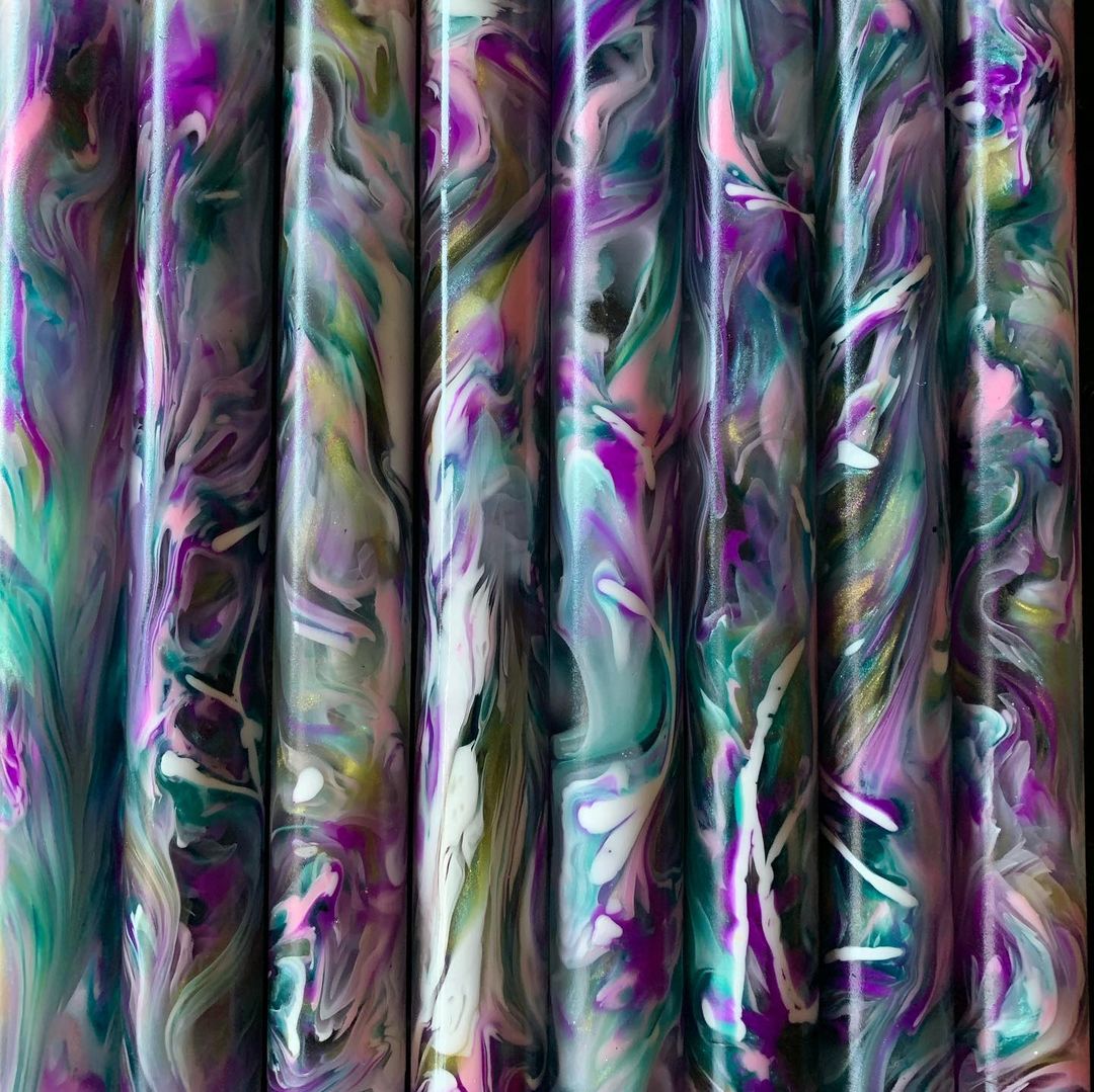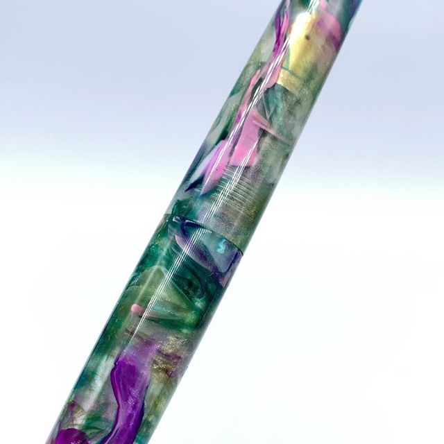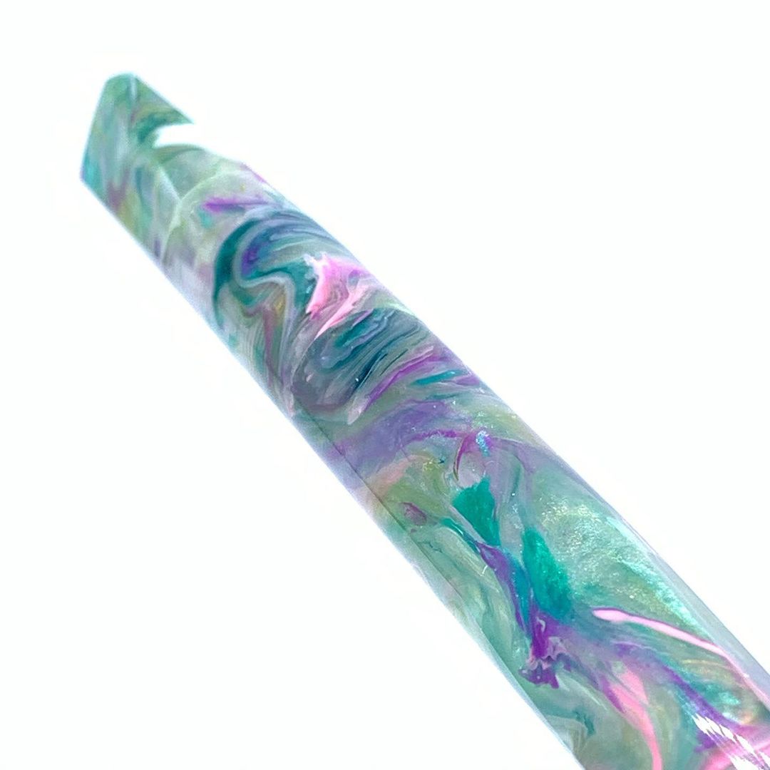 Monet had his Water Lily series and so does Tailored Pen Company! Once we saw the colors swirling in this blank, we had to name it Clear Water Lily (we have a blank called Water Lily that is not clear). Beautiful shades of teal, green, pink, purple, and white float thru a clear resin in this custom-Tailored Pen Company Fountain Pen, invoking images of Water Lily paintings. Our Clear Water Lily original blanks are created and cured in our own workshop for a unique Fountain pen. Each turn of the pen creates a beautiful shimmery array of colors.