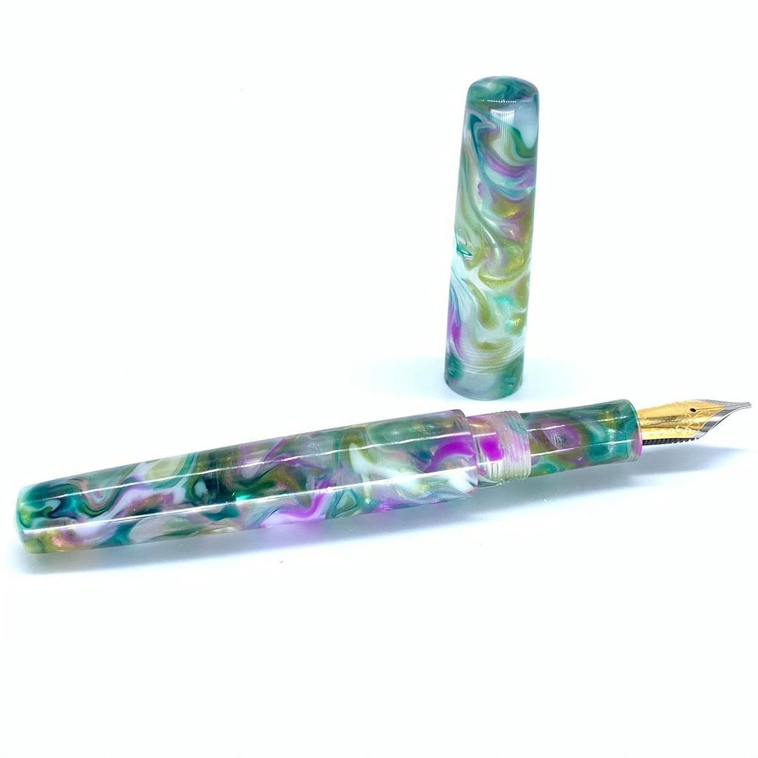 This listing is for a custom order Fountain Pen in our Clear Water Lily. Please see our current queue time. Each pen is unique in its swirls and patterns, no two are alike. Please understand that the colors we pour are a precise recipe but how the swirls and colors are highlighted are different in each and every pour.