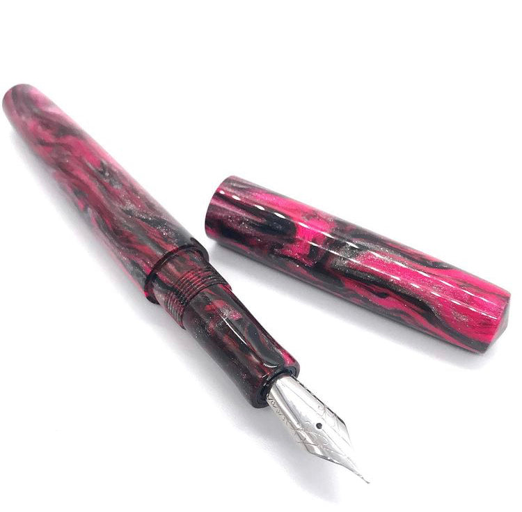 Derby Girl is a beautiful Pink and black and of course diamonds fountain pen! Derby Girl will make a stunning Fountain Pen. Choose which style best fits you! Real diamond chips are cast into each acrylic blank and create a diamond sparkle with every turn of the pen.