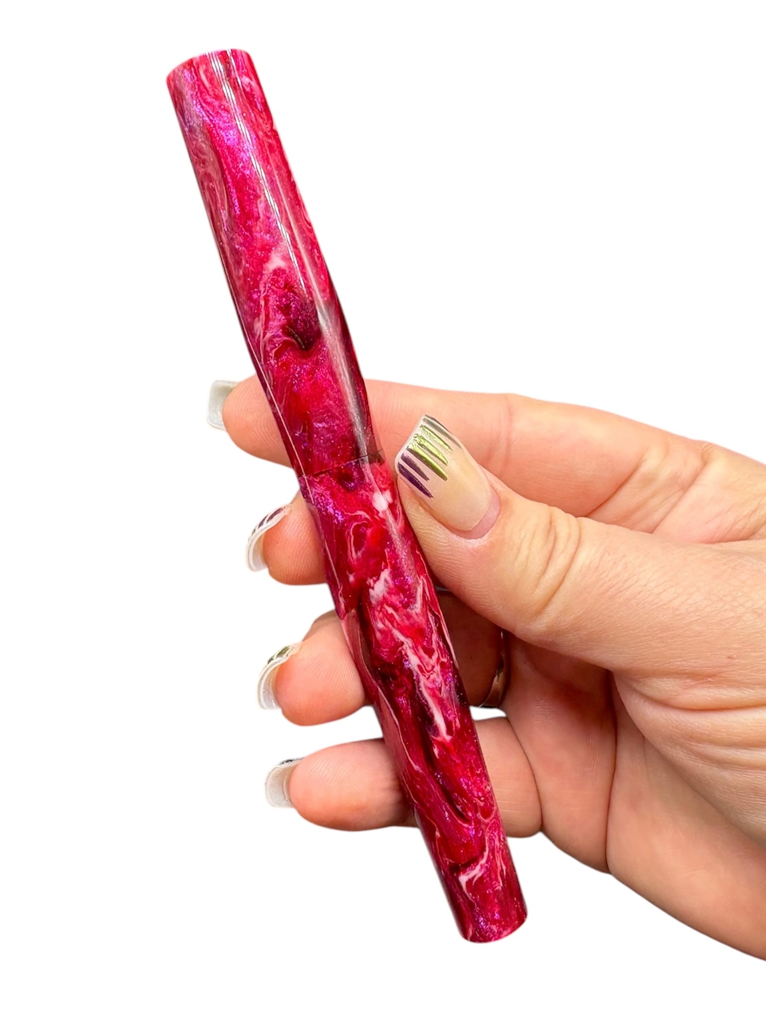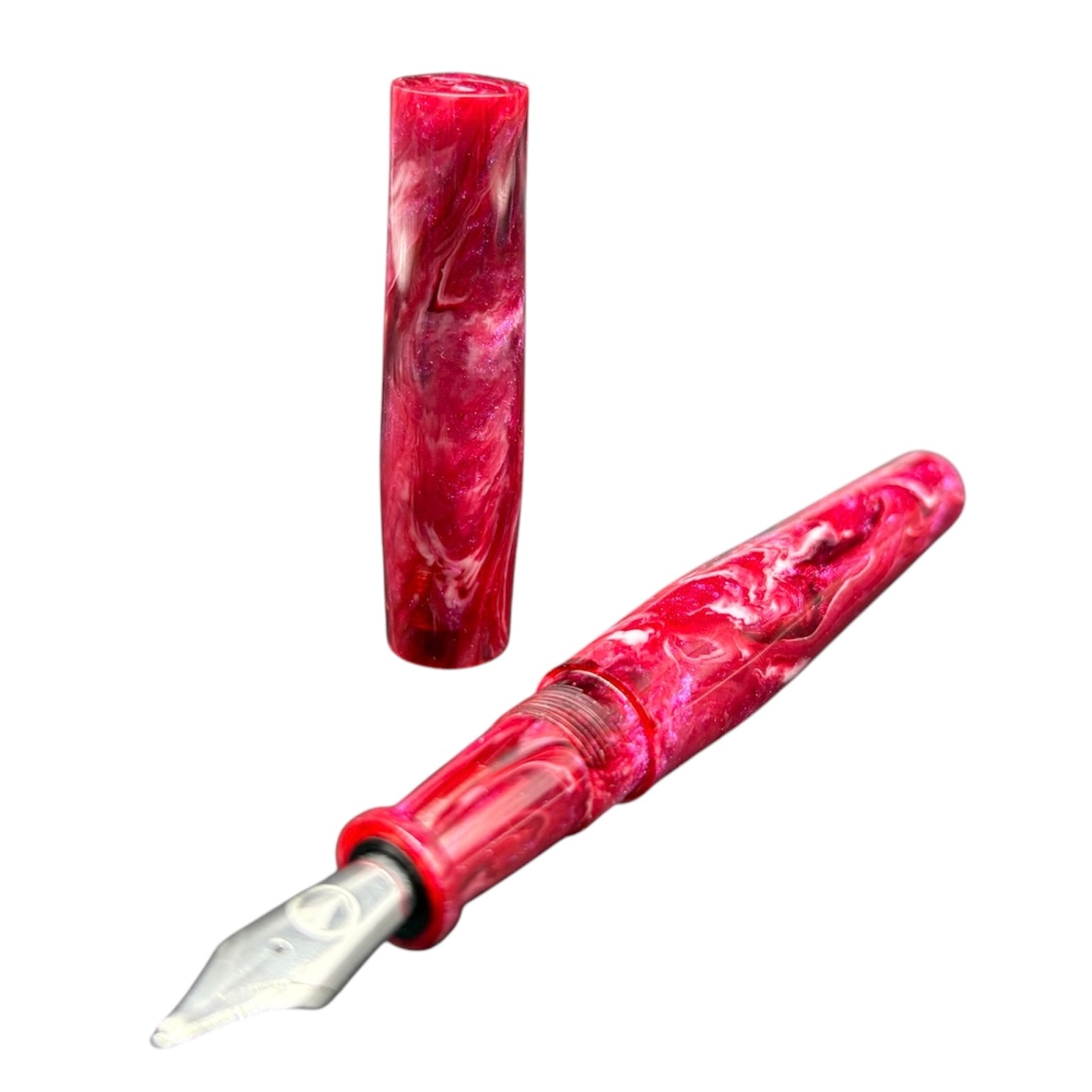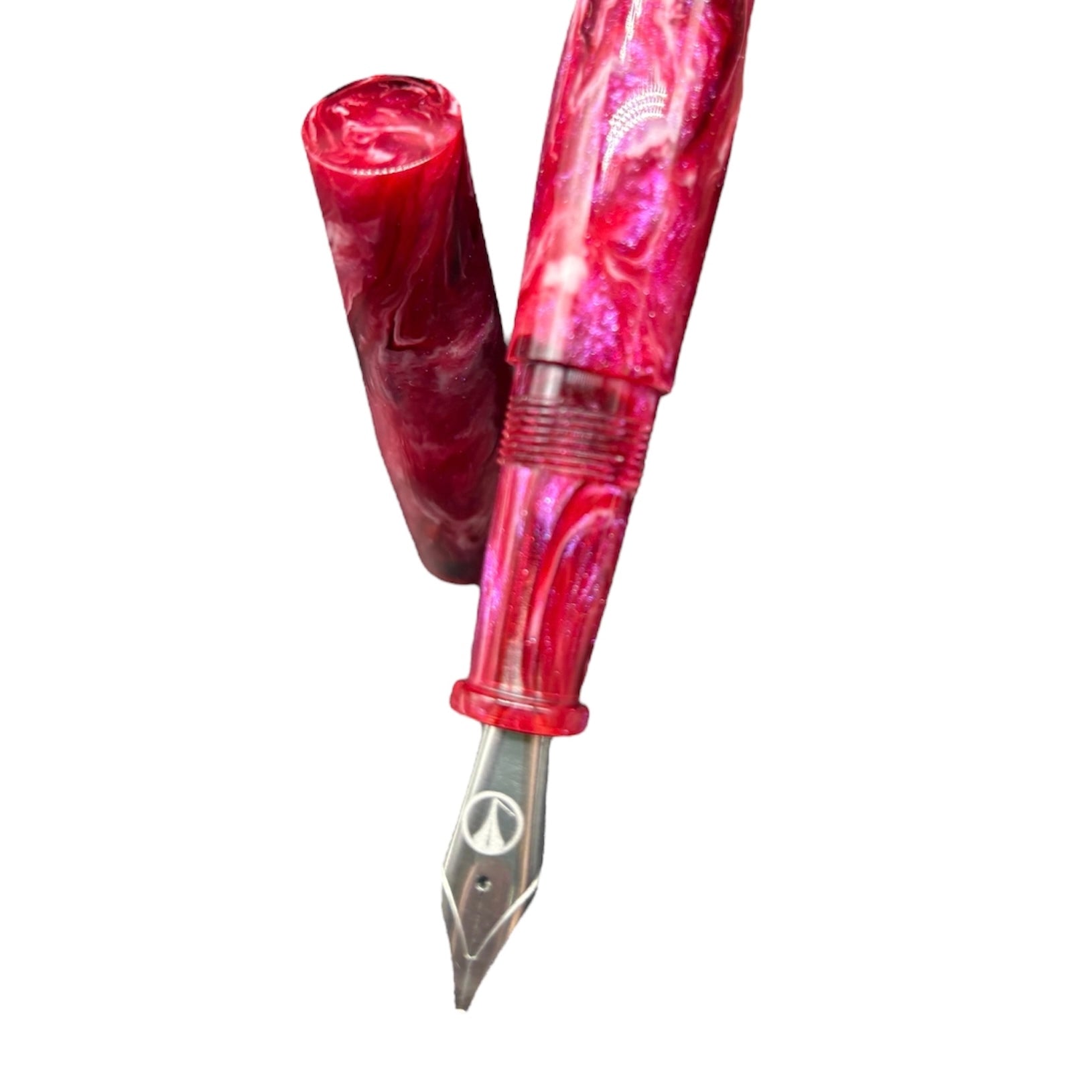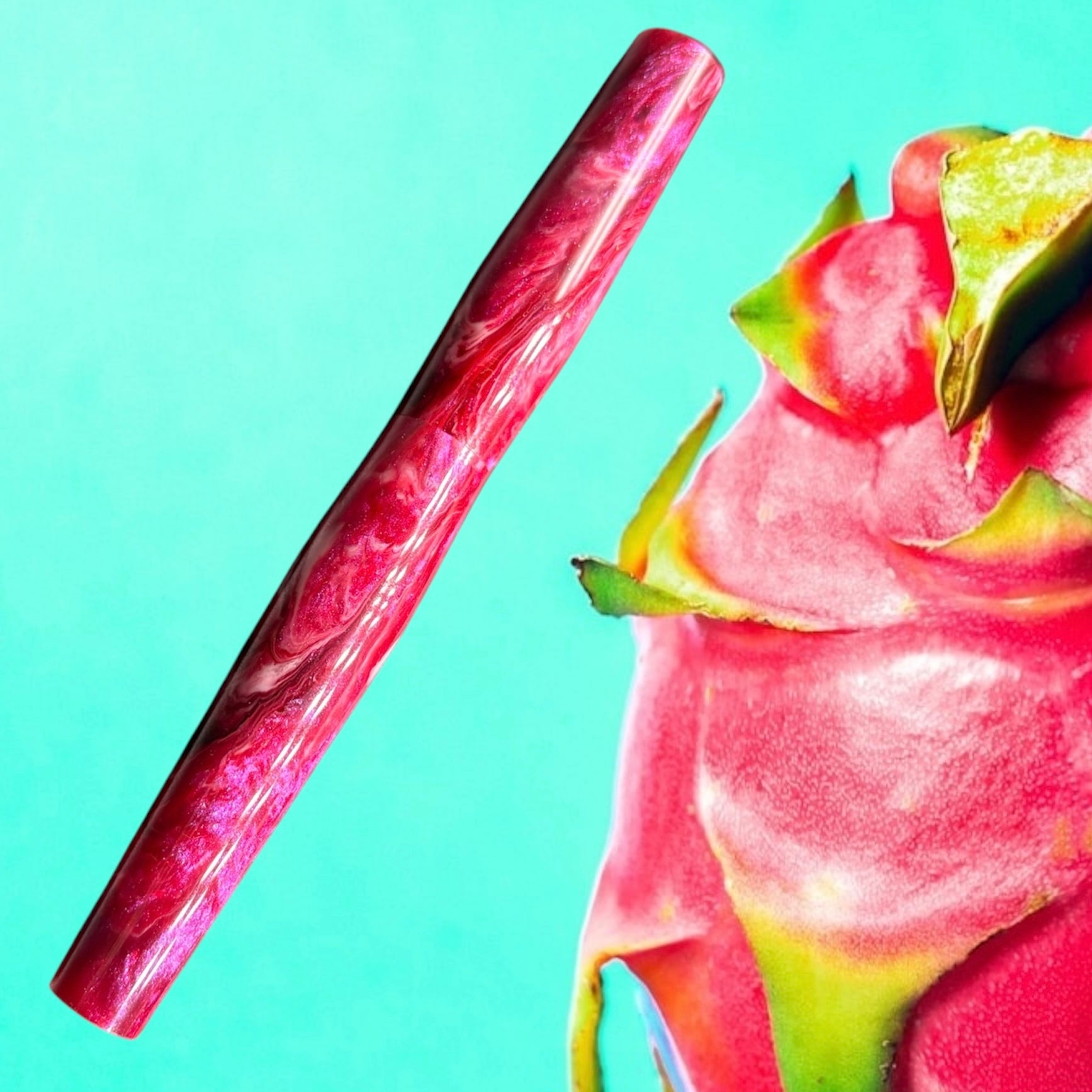Bold, vibrant, and utterly mesmerizing - Dragonfruit is a fountain pen that commands attention. Swirling with deep reds, rich purples, and striking pinks, this handcrafted beauty features iridescent accents that shimmer with every turn. Inspired by the exotic fruit it’s named after, Dragonfruit is a true statement piece.