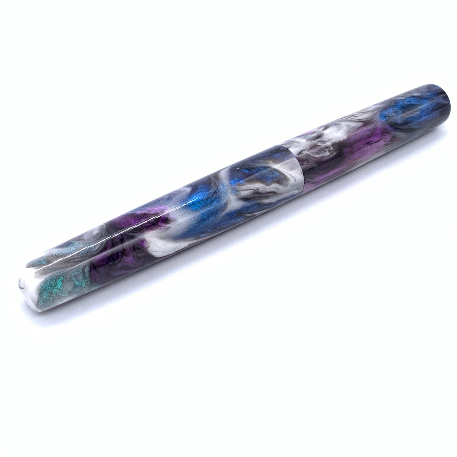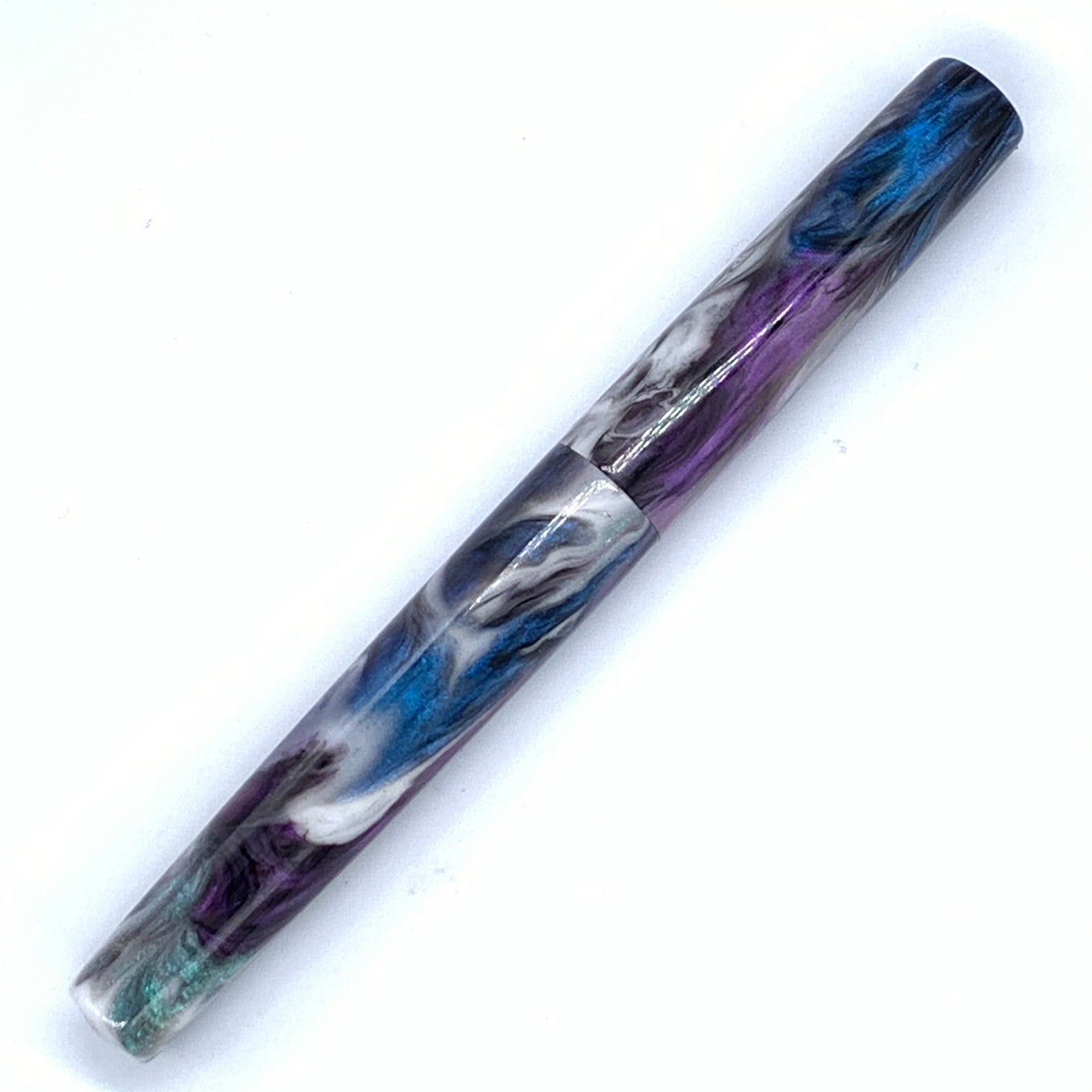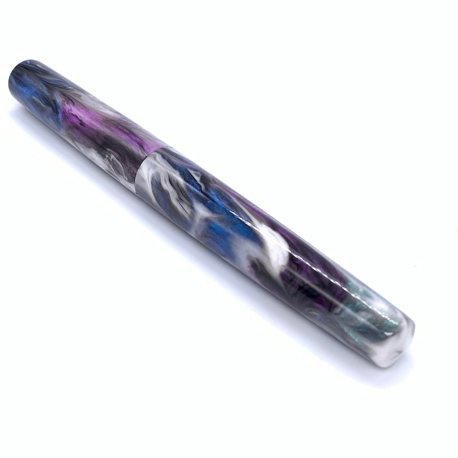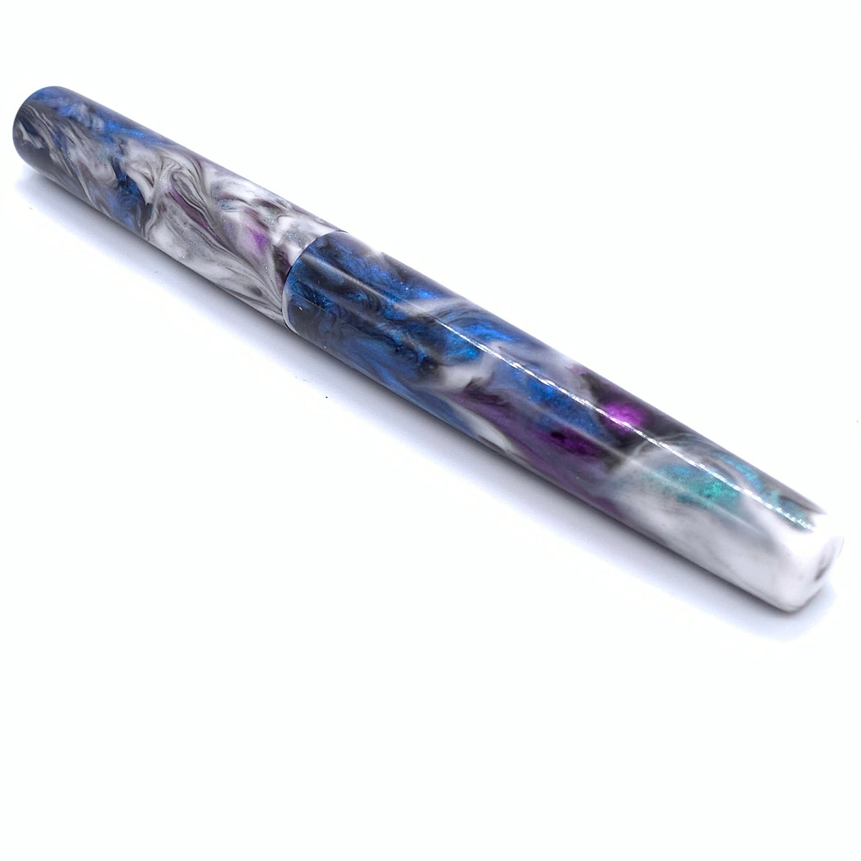 Snow, Ice and Sea swirl in a stormy tempest of Glacial colors to create this custom Fountain Pen. Beautiful iridescent colors of blues and purples swirl around icy colors of whites, grays and blacks. Choose your own style, nib and clip options.