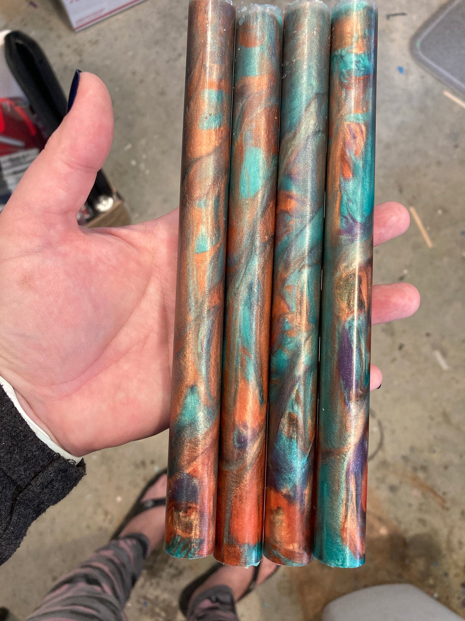 Each blank is unique in color swirls and patterns. The picture is an overall representation of the blank colors you will receive.