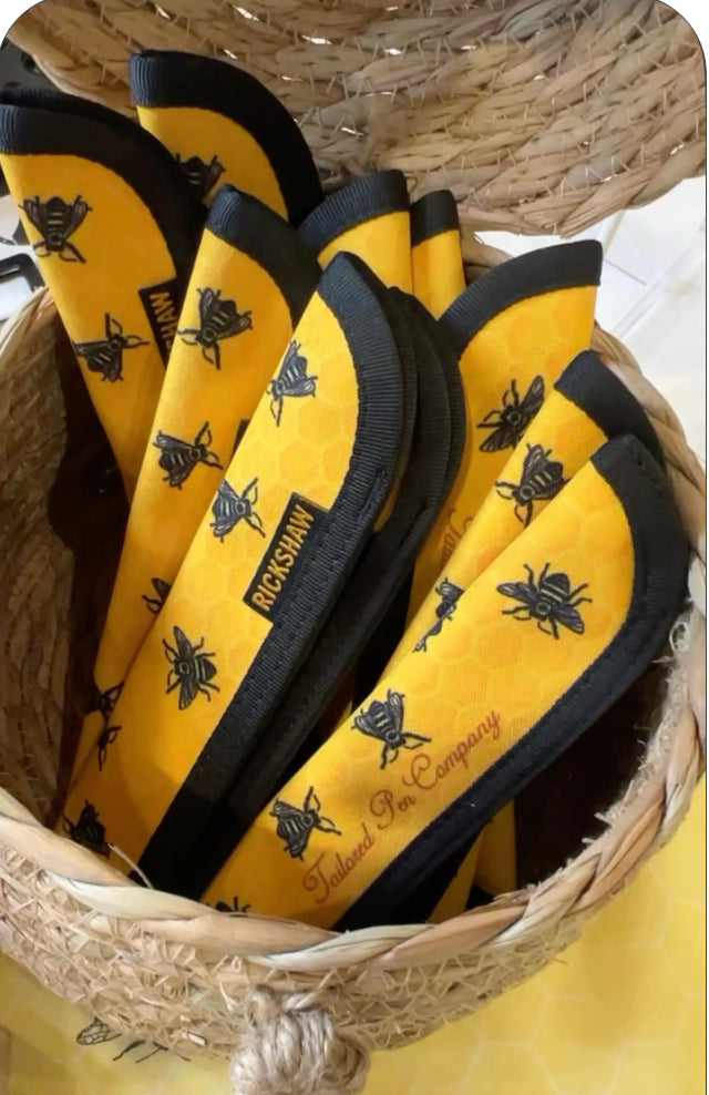 Solo Pen Sleeve plush coozy with super-soft yellow plush interior, for your special pen. Honeybee is our exclusive design Manufactured in San Francisco from RickShaw Bags. This beautiful pattern pairs well with our Bee’s Knees pens.