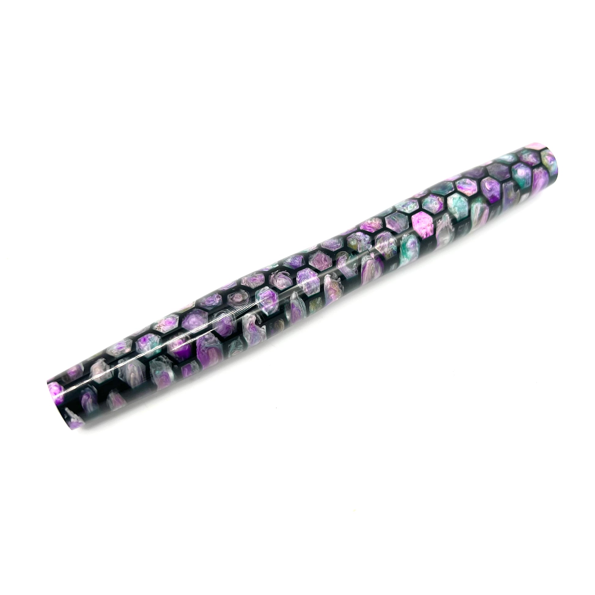 Each blank is poured in-house and turned skillfully by hand in our workshop. Each pen is unique in color patterns and swirls, though the colors are kept consistent.