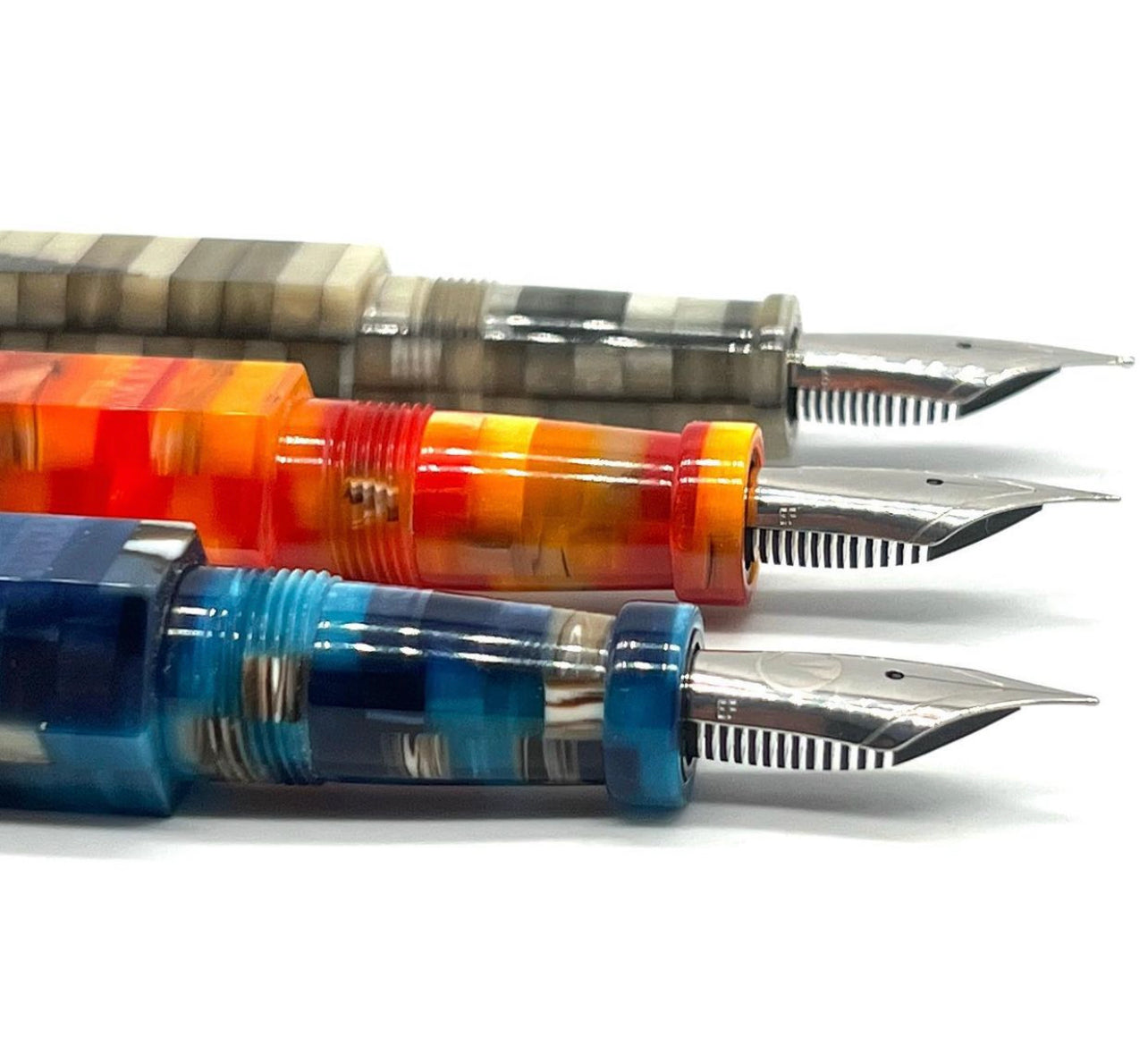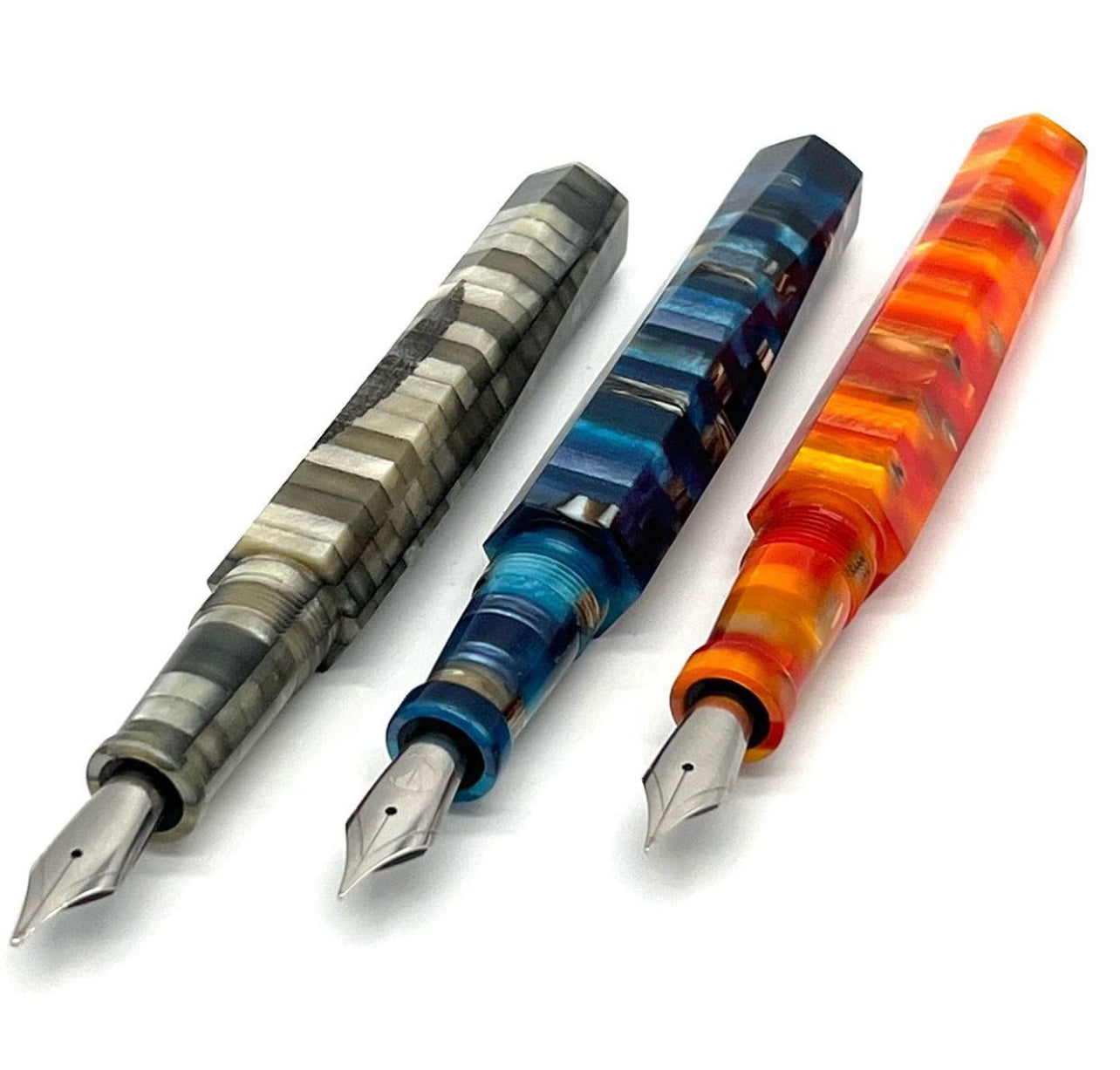 Available in Hawaii (blue), Mango (orange), and Sand. Turned in our faceted Ascher style and available with Bock #6 or Jowo #6 nib. Choose between standard or small size.
