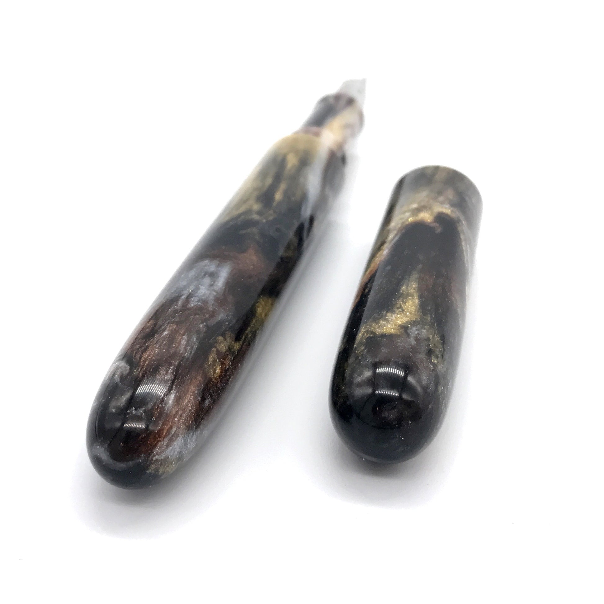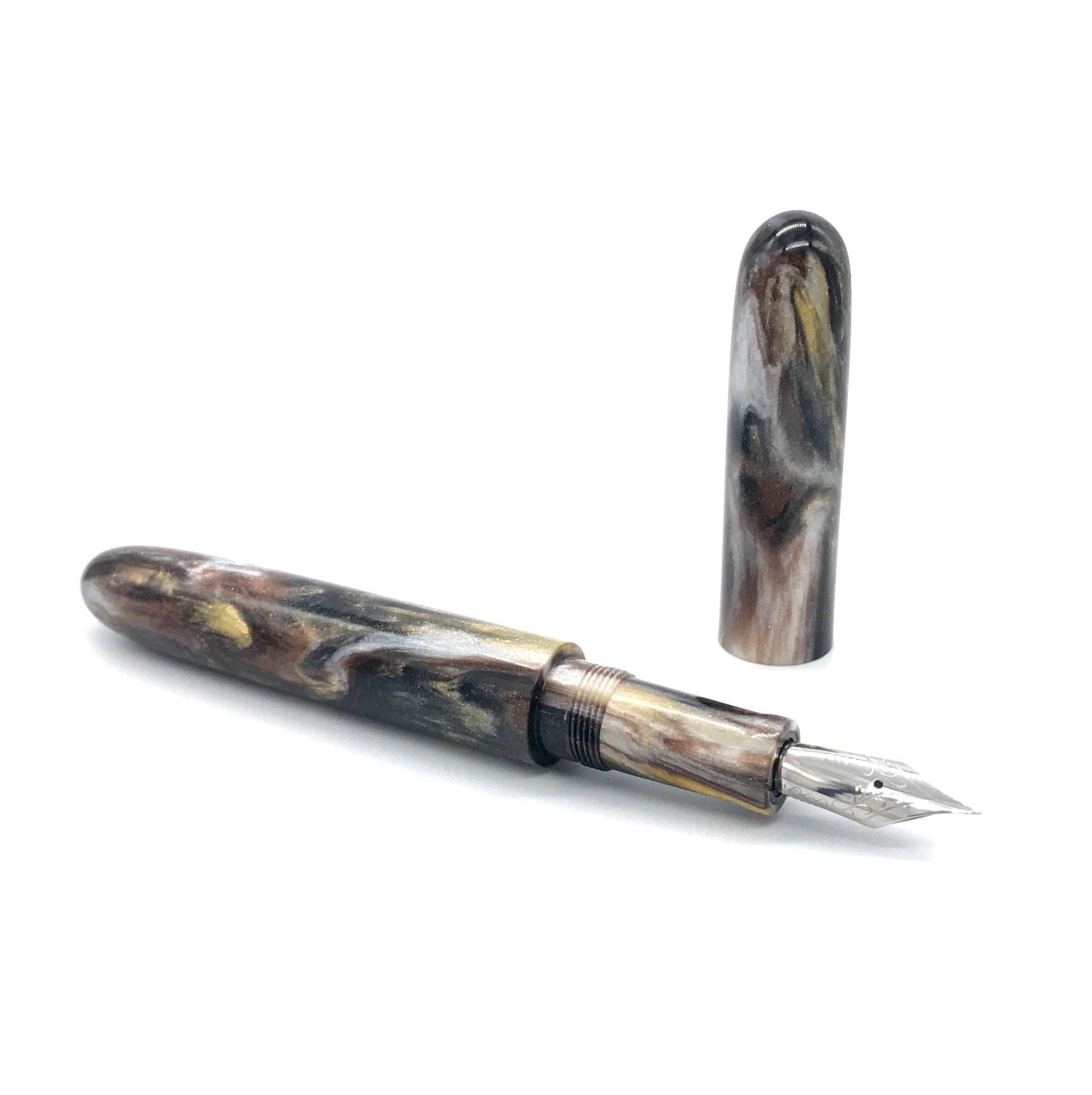 Each pen is crafted by hand in our workshop except for the nib and ink cartridge. Each beautiful blank is skillfully hand turned including all the threads. Guaranteed to write beautifully. Our pens come with Jowo #6 nibs. Contact us for upgraded nib options.
