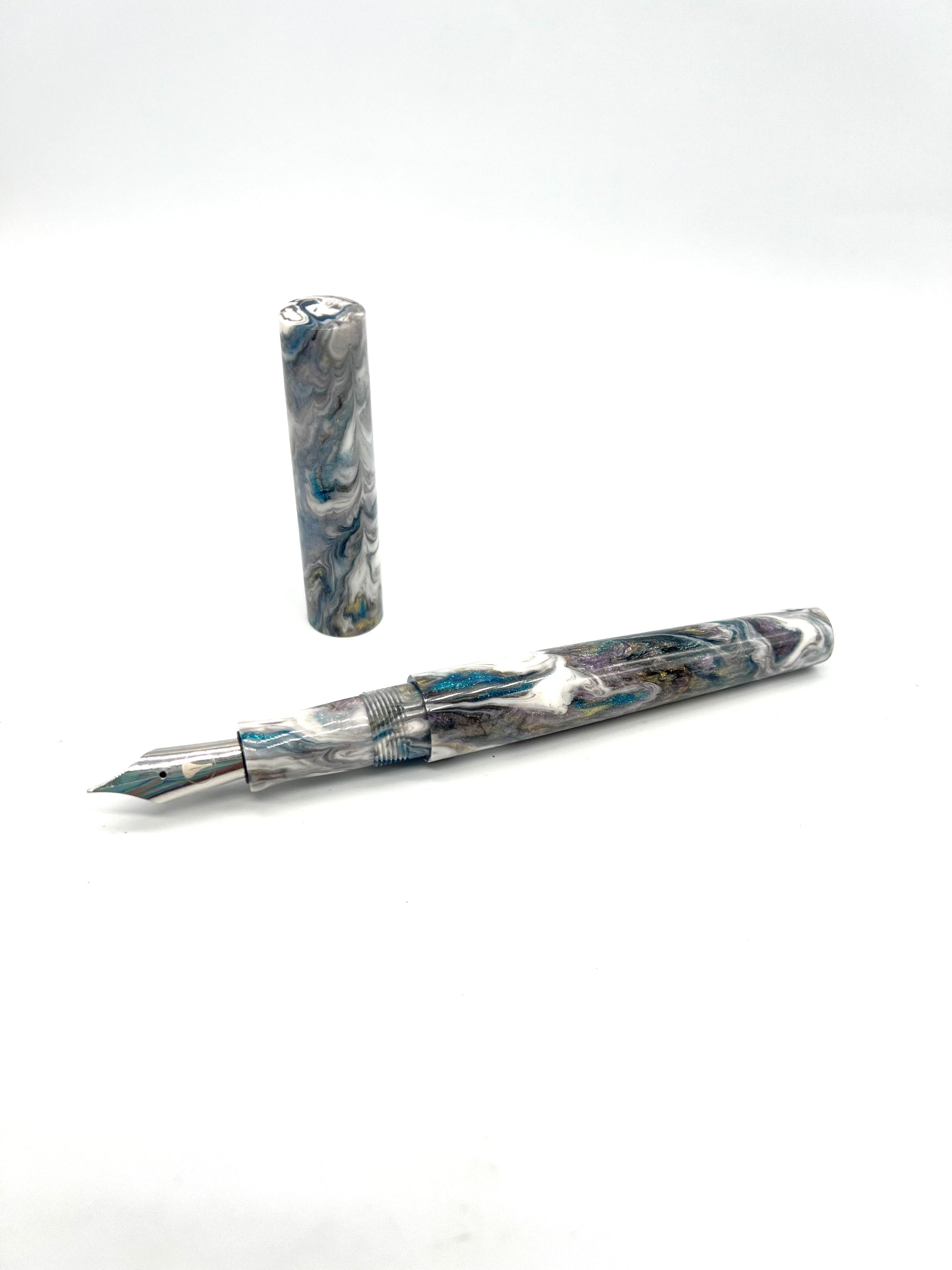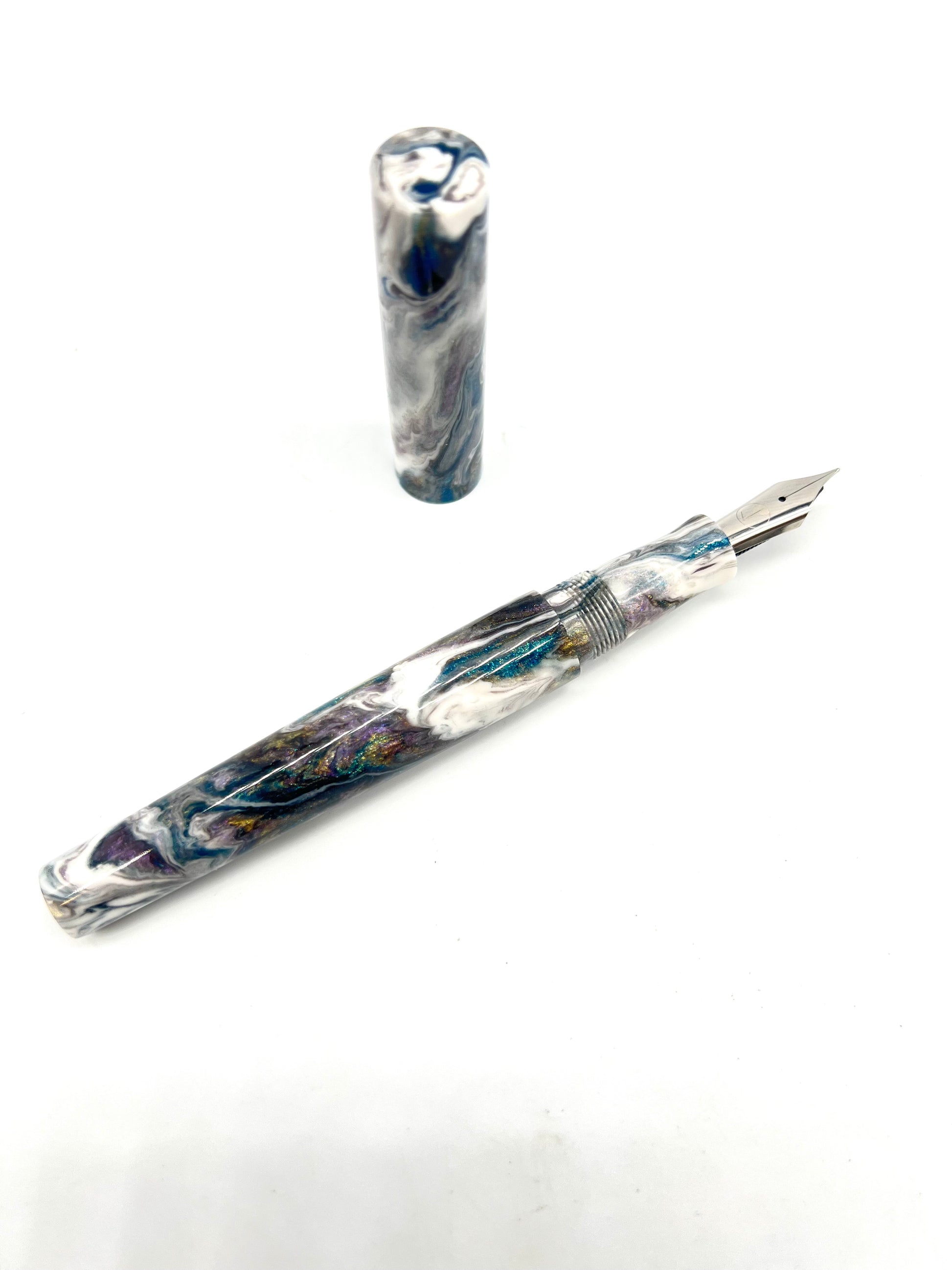 Inspired from Robert Oster's Tolerance ink for The Orlando Pen Show, we bring you Mystique. Beautiful hues of silver, iridescent purples and much more. Think Glacial Storm meets Abalone. Choose your own style, nib and clip options.