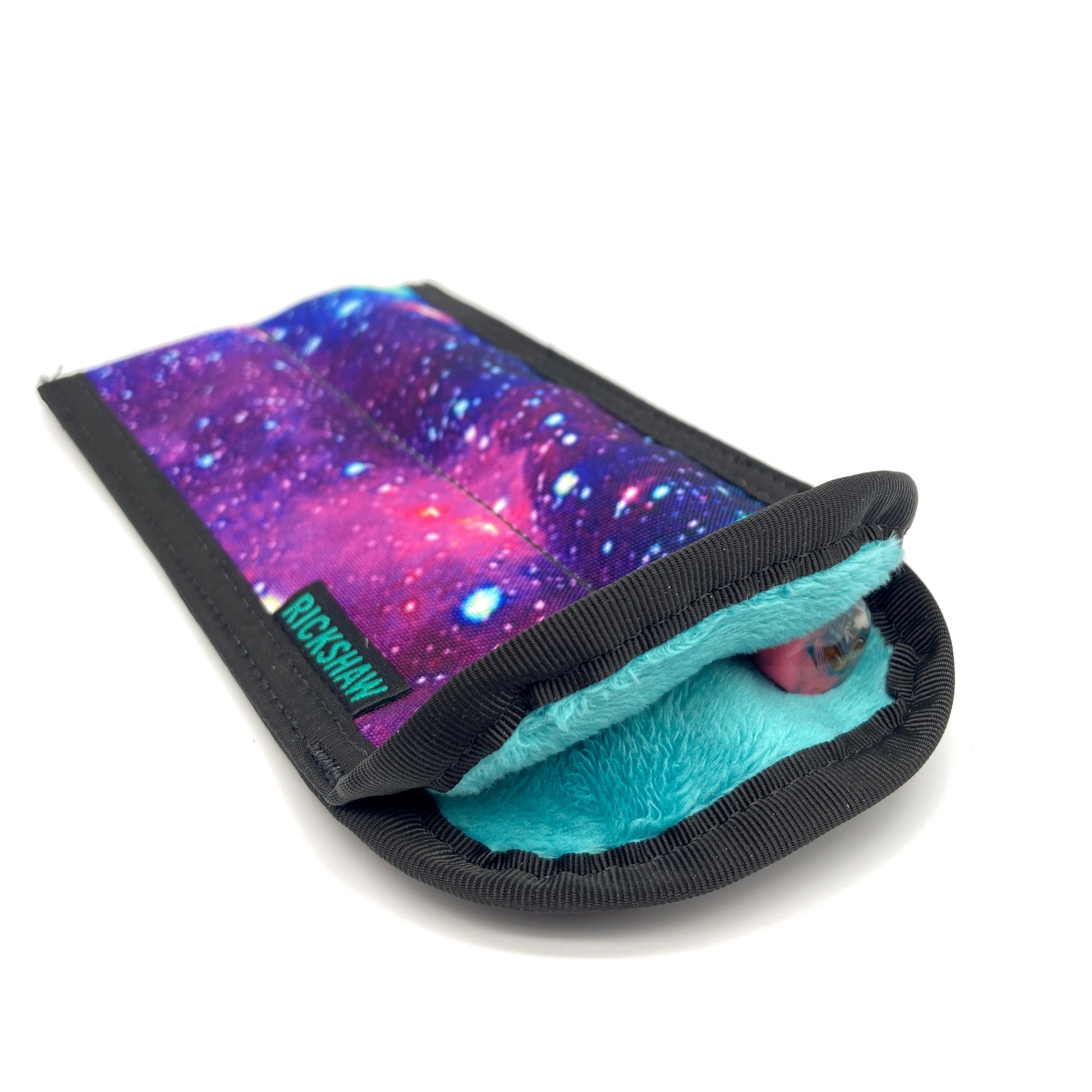 What could be better then a single pen sleeve? A 2 pen Coozy! Nebula is now available in a 2 pen coozy with super-soft teal plush interior, for your special pens. Nebula is our exclusive design Manufactured in San Francisco from RickShaw Bags. This beautiful Nebula pattern pairs well with our Nebula series pens and also comes in a single and triple coozy as well as a Coozy Case and Deluxe 6 pen roll!
