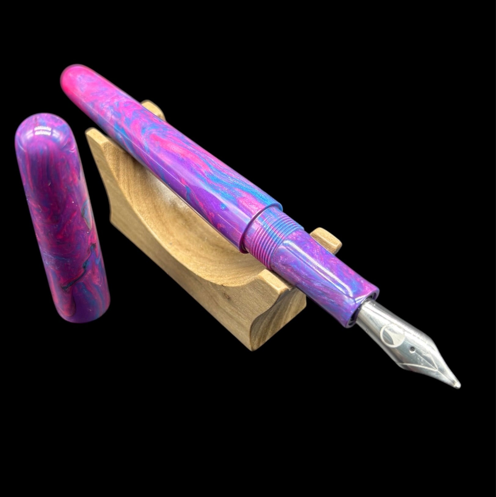Capture the beauty of subtle neon in the Neon Breeze Fountain Pen, where soft swirls of pink, blue, and purple combine to create a design that is both vibrant and serene. The pastel neon colors evoke a sense of lightness and energy, making this pen a perfect balance of fun and elegance.