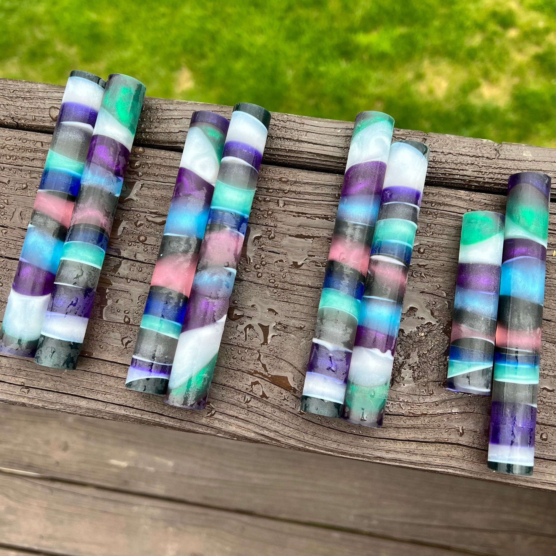 Painted Sand pen blanks are a labor of love and a reminder of the fun crafting of painted sand jars. Each is unique in the layers and colors. For this reason, we list these custom orders as a deposit only with you choosing your exact blank to make your pen.