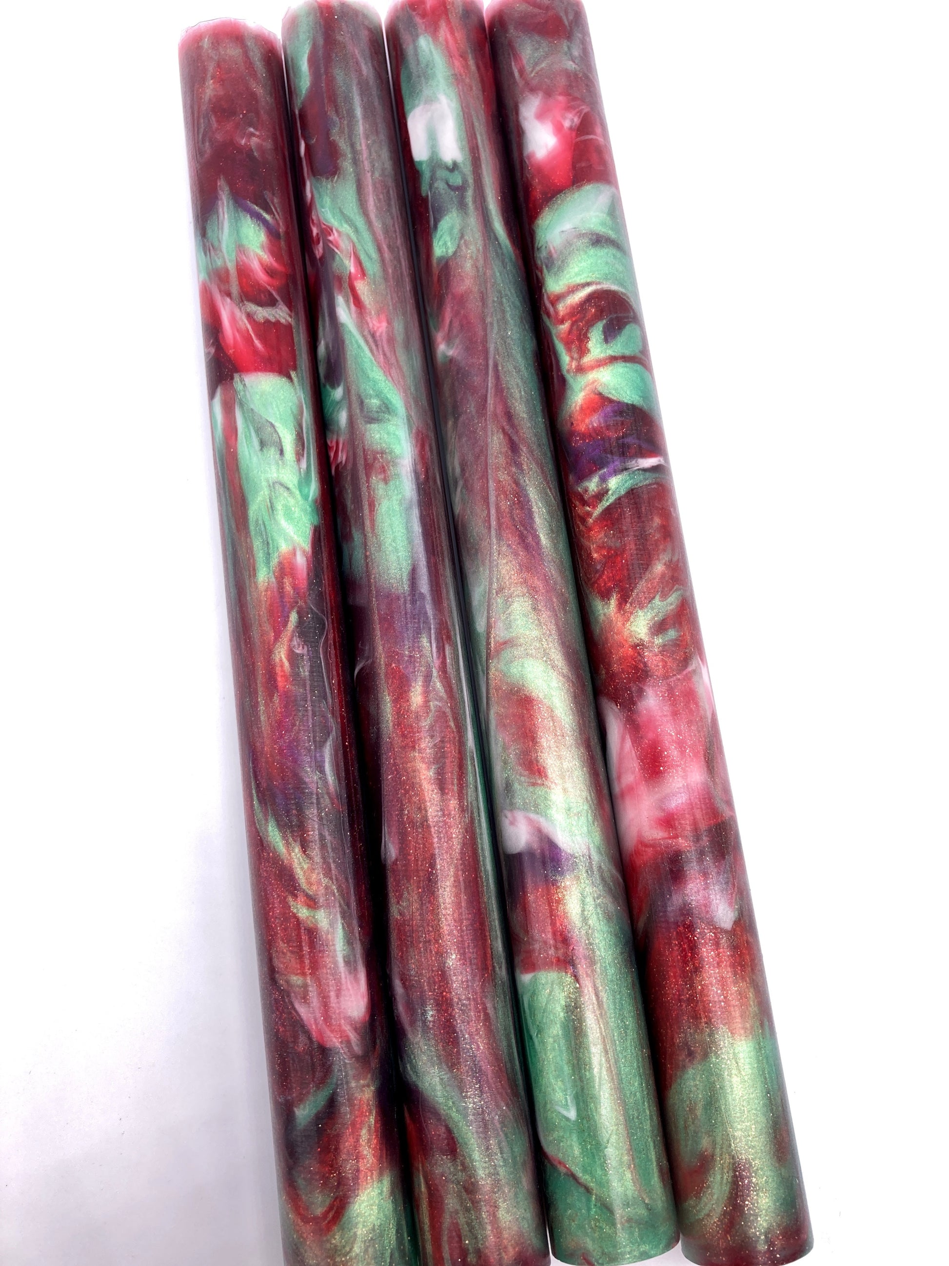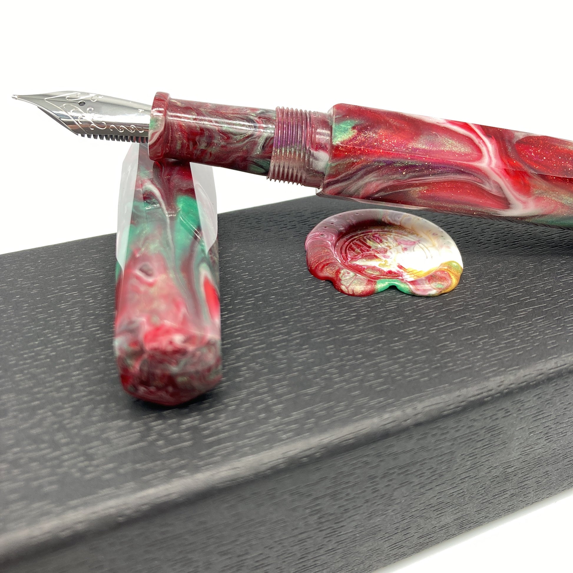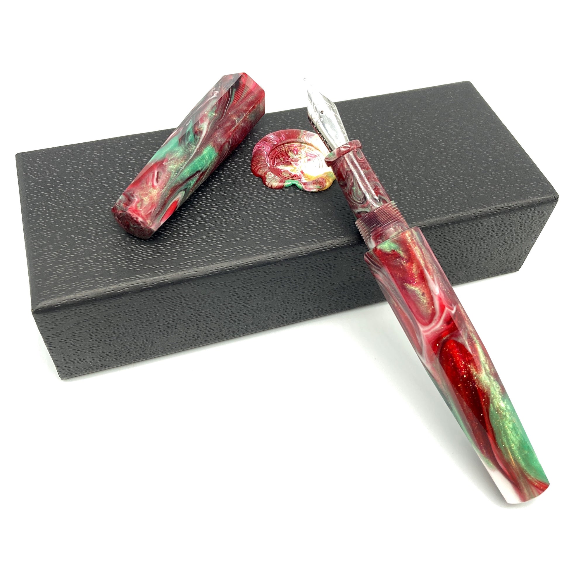 Red Ginger Lily is a custom Tailored Pen Company blank. Poured and cured in our own workshop. Each pour has the same colors but every one is unique in swirls and patterns created from the pour process. Please note that the pen pictured will not be the exact one you receive, but will be the same colors - swirl patterns vary with each blank.