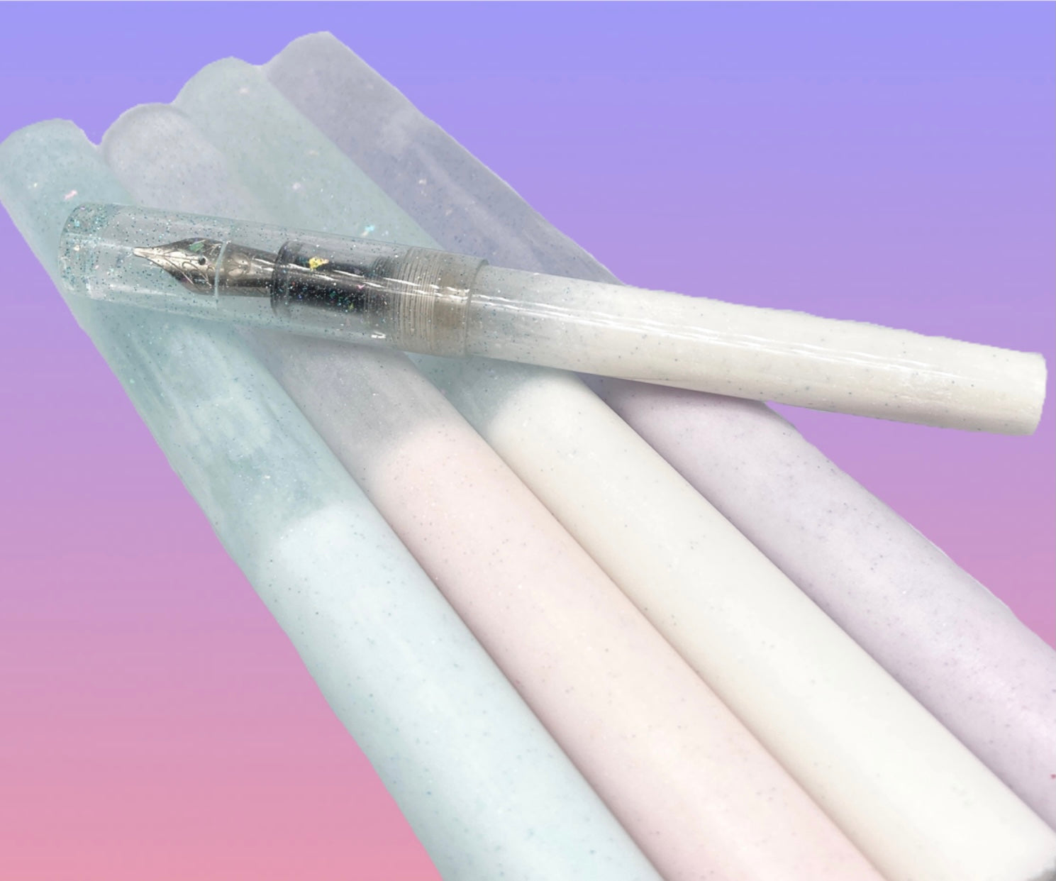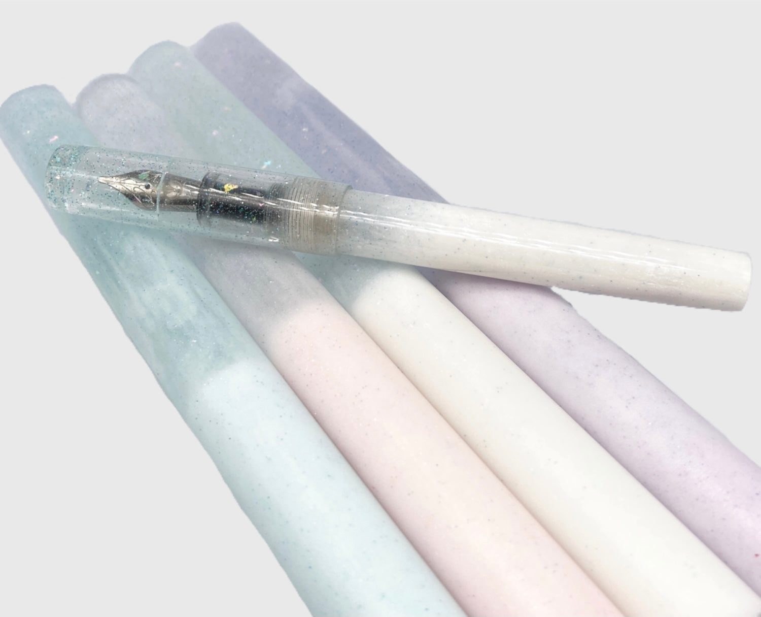 Enjoy the sparkle of snow all year long with our new Sparkle Snowflake blanks. Available in 4 subtle colors - White, Pink, Lavender, and blue. A blanket of snow is at the base of the pen, covering the majority of the body of the pen and transitioning into a clear snow shower with lots of sparkle throughout. Choose your own style, nib and clip options.