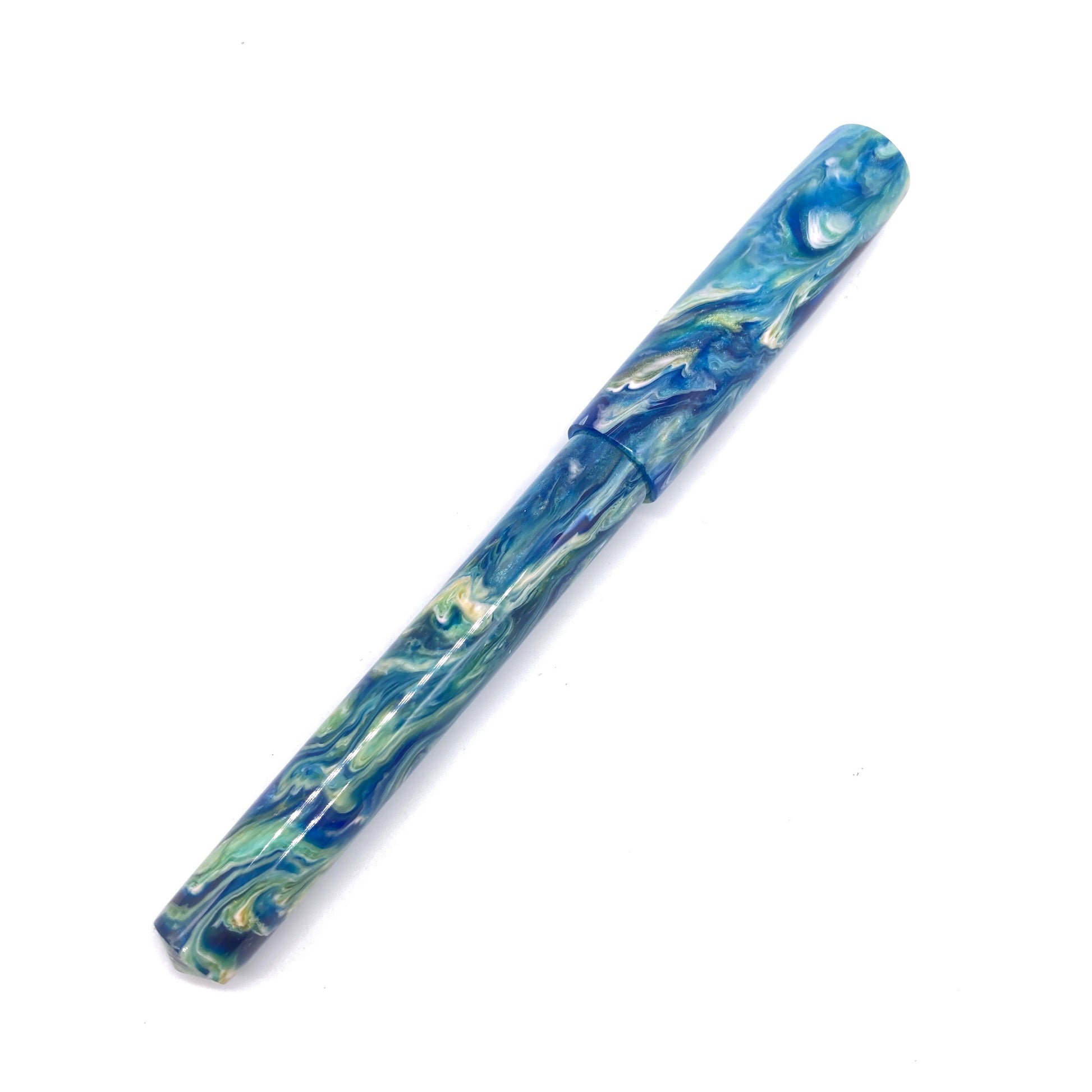 Swirls and swirls of blues, yellow and green in this beautiful Starry Night pen. Pictured here in our Westminster style. Comes with your choice of either Bock #6 or Jowo #6 nib and converter.