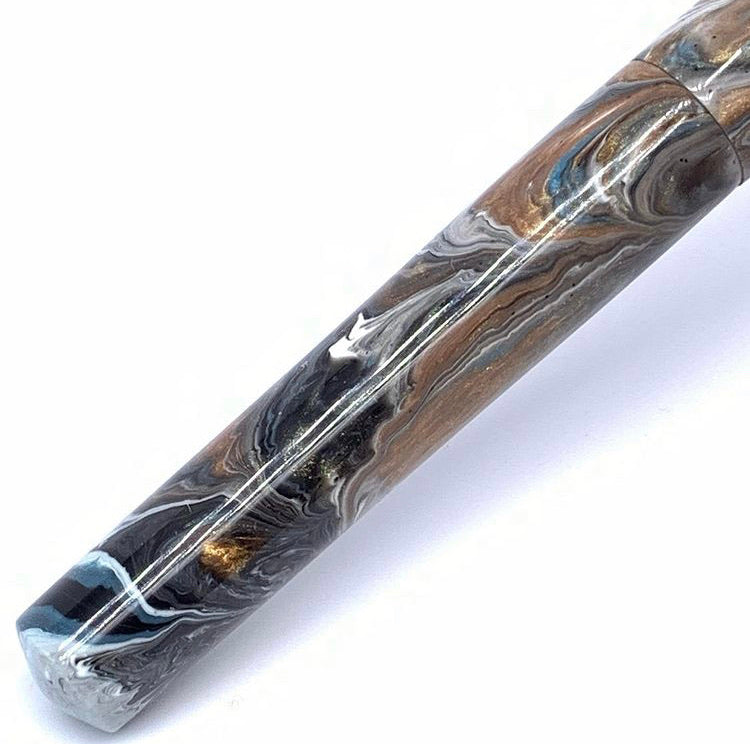 Each pen is crafted by hand in our workshop except for the nib and ink cartridge. Each beautiful blank is skillfully hand turned including all the threads. Guaranteed to write beautifully. Our pens come with Jowo #6 nibs. Contact us for upgraded nib options.