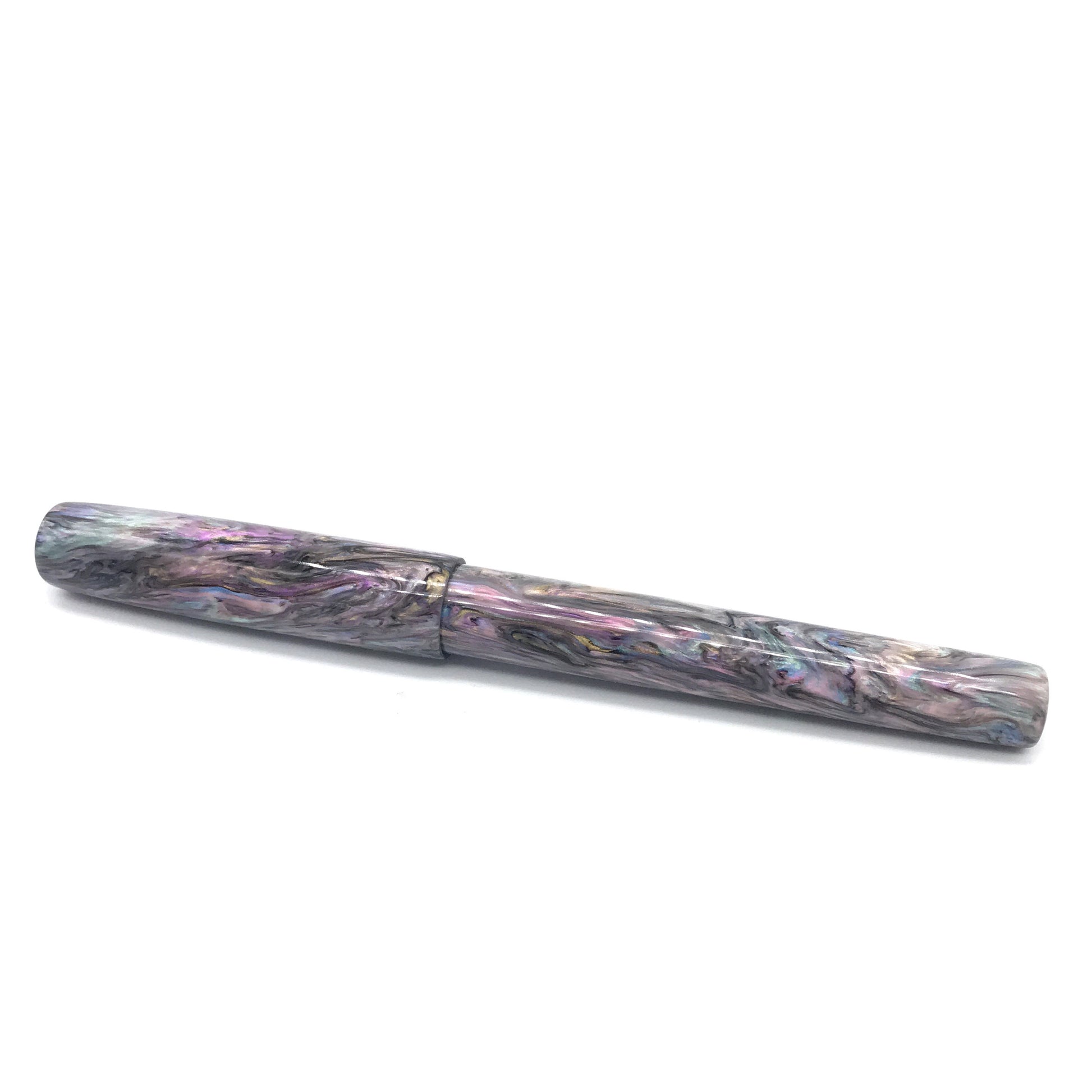Beautiful Stained glass like colors swirl in this custom Tailored Pen Company Fountain Pen. Our Tiffany Stained Glass original blanks are created and cured in our own workshop for a unique Fountain pen. Each turn of the pen creates a beautiful shimmery array of colors.