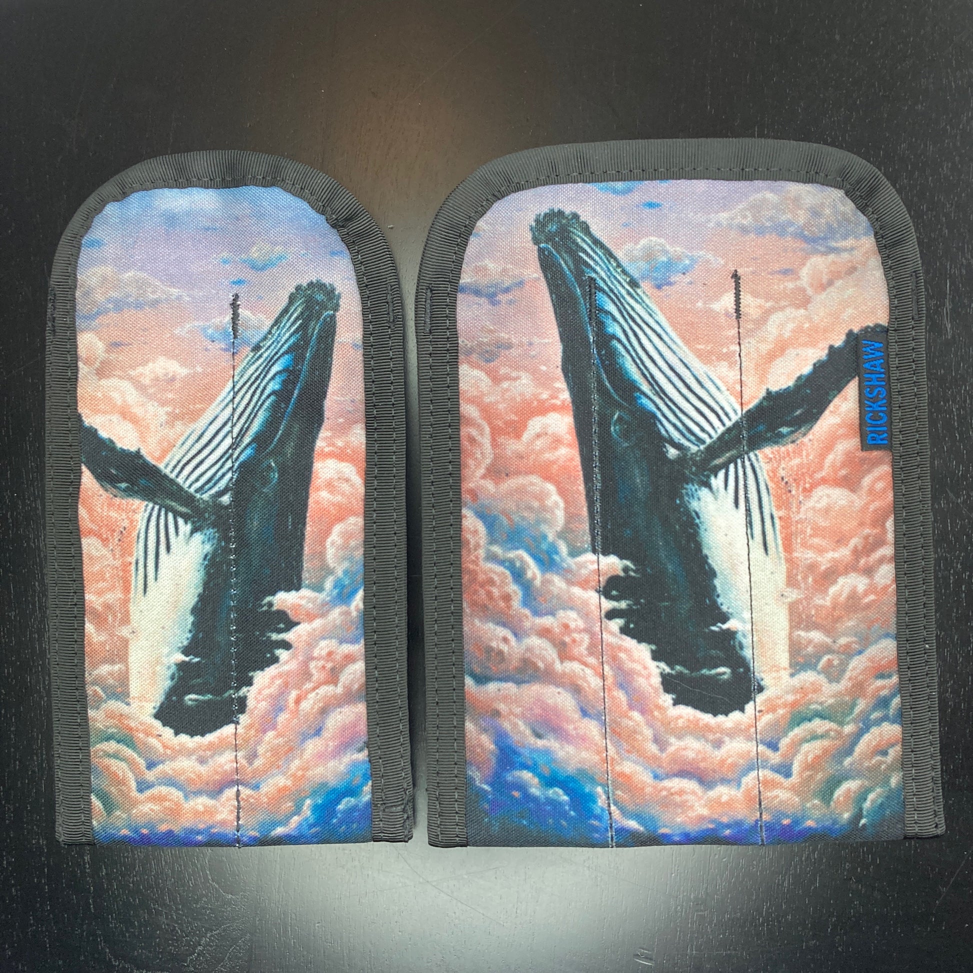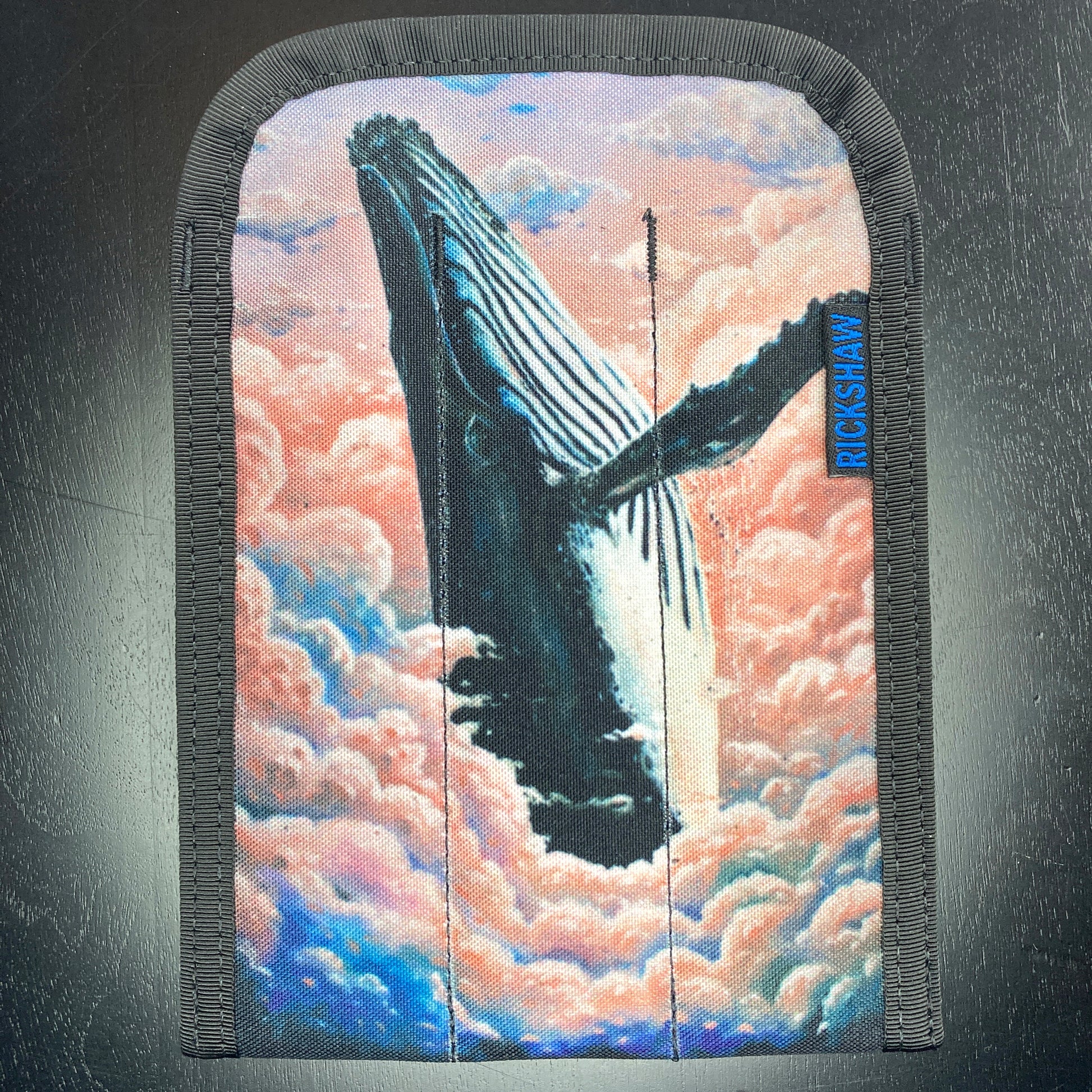 Whale in the Clouds is original artwork by Elyse Byers. Now enjoy it on a 2 or 3 pen coozy from Rickshaw Bags. They make a super soft plush pen coozy that's flexible without needing a flap, elastic or velcro. Line with Royal blue plush to protect your favorite pens. Manufactured in the USA by Rickshaw bags!